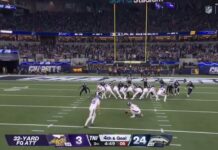 According to ESPN’s Mike Reiss, the goal posts were violently swaying in the 35mph wind.