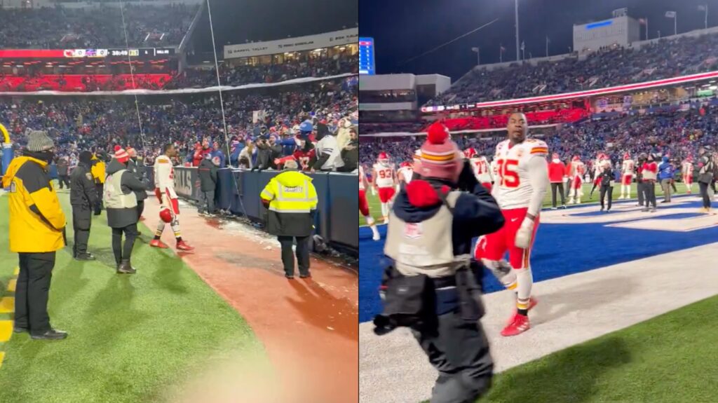 Things were intense at Highmark Stadium as Chris Jones and BillsMafia got into it during pregame warmups.