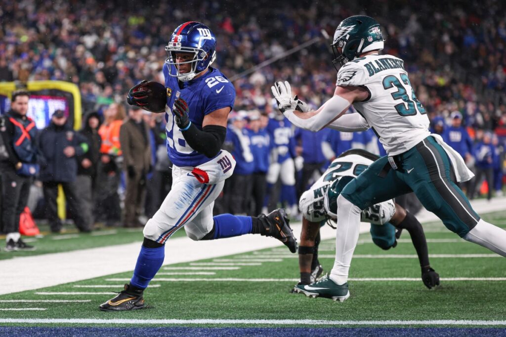 Barkley, 27, has starred for the Giants over the past six seasons since being selected with the second overall pick in 2018, racking up over 7,300 all-purpose yards and 47 touchdowns. A two-time Pro Bowler, Barkley rushed for 962 yards in 14 games last season.
