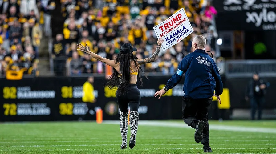 The fan, who’s now been identified as Claudia Rose, ran onto the field at Acrisure Stadium with a pro-Trump sign. NBC cameras obviously made sure she didn’t get her limelight and made sure she wasn’t shown on live TV.