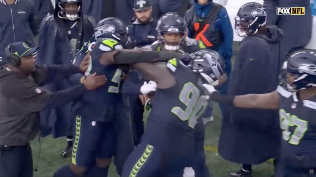 Seahawks defensive lineman Derick Hall and Jarren Reed had to be separated by teammates after getting into a physical altercation. It’s unknown what caused the altercation but the two were going at it on the field as well before getting physical on the sidelines.