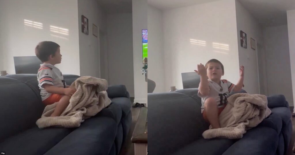 A Bears fan shared a video of his little kid going through a storm of emotions watching the Packers block the Chicago Bears game-winning field goal attempt in the final seconds of Sunday’s game.
