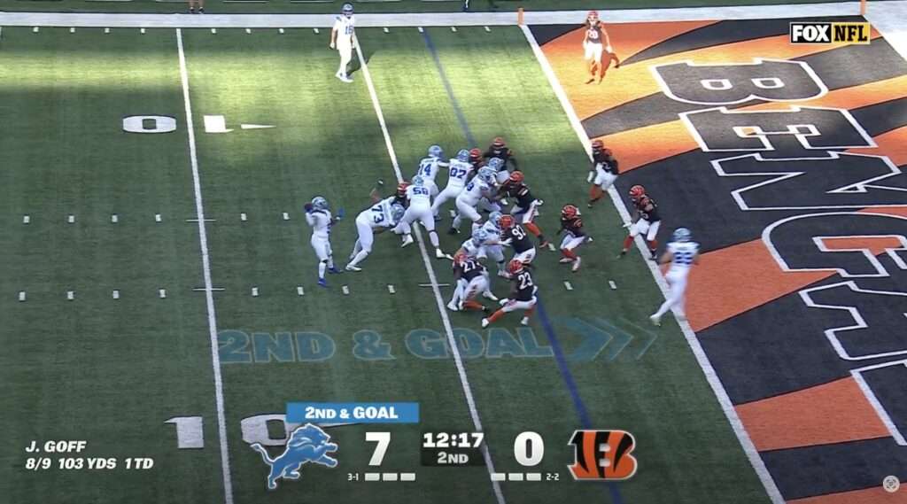 During Sunday’s game against the Cincinnati Bengals, the ran one of their signature trick plays with running back David Montgomery throwing a touchdown pass to tight end Brock Wright.