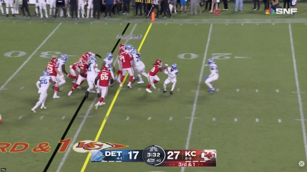 During Sunday night’s game against the Detroit Lions, Kareem Hunt ran right through Lions cornerback Rock Ya-Sin, trucking him right into oblivion.