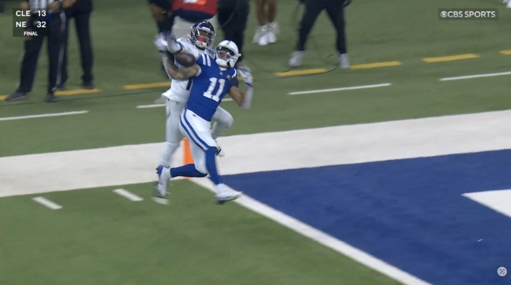 During the second quarter of Sunday’s Titans-Colts game in Indianapolis, Michael Pittman Jr. made a ridiculous touchdown catch with a Titans cornerback draped all over him.