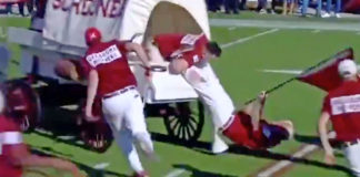 Guy Hilariously Falls Out Of Oklahoma Schooner Wagon At Sooners Game